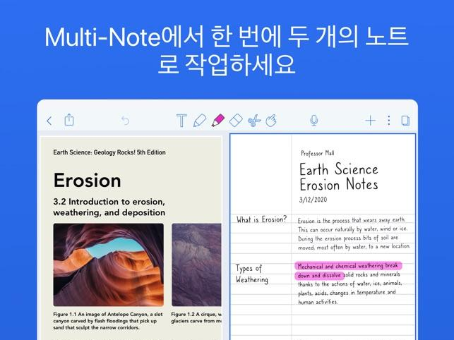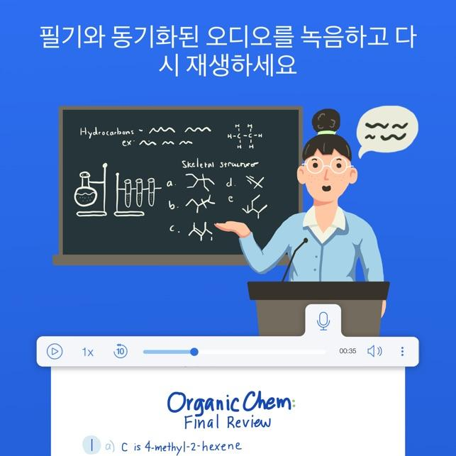 Notability는 iOS, MacOS 노트 필기 부동의 1위 앱이라고 할 수 있다. 특유의 깔끔한 인터페이스, 직관적인 툴, 실시간 녹음 등의 특징을 갖고 있는데, 필기한 글씨를 인식해서 텍스트로 전환하거나 검색할 수 있는 기능 역시 강점 중 하나이다.